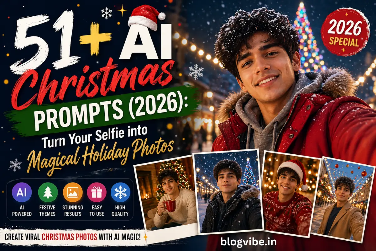 AI Christmas Prompts: AI has completely changed the way we make holiday material. The AI Christmas Prompts craze is getting viral on social media in 2026. It helps people turn plain selfies into beautiful holiday photographs that look like they came from a fairy tale. AI technologies make it quite easy to generate a personal Christmas card, an Instagram post, or even a viral video.