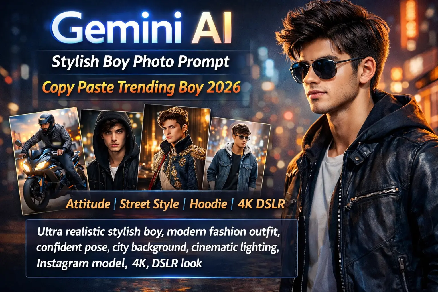 By using the Gemini AI Stylish Boy Photo Prompt Copy Paste Trending Boy 2026 ideas shared in this guide, you can generate high-quality images for social media, blogs, or creative projects.